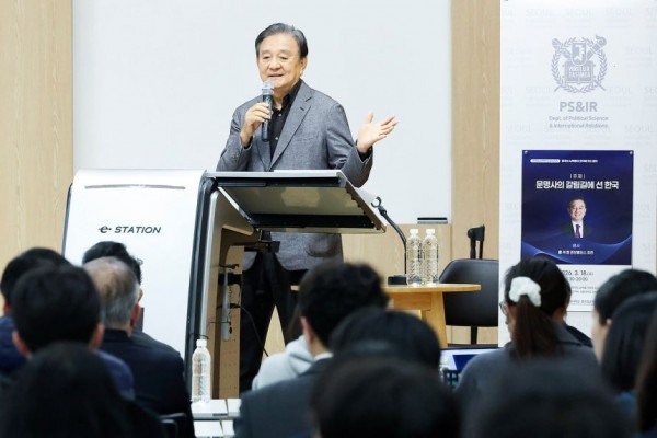 홍석현 한반도평화만들기 재단 이사장(중앙홀딩스 회장)은 18일 오후 서울 관악구 서울대 아시아연구소 삼익홀에서 열린 특별강연 ‘문명사의 갈림길에 선 한국’에서 “고급 인재가 의대·법대로 가는 나라에서 AI 혁명을 해나갈 수 있는지에 대해 고민을 해야 한다”며 이같이 말했다.
